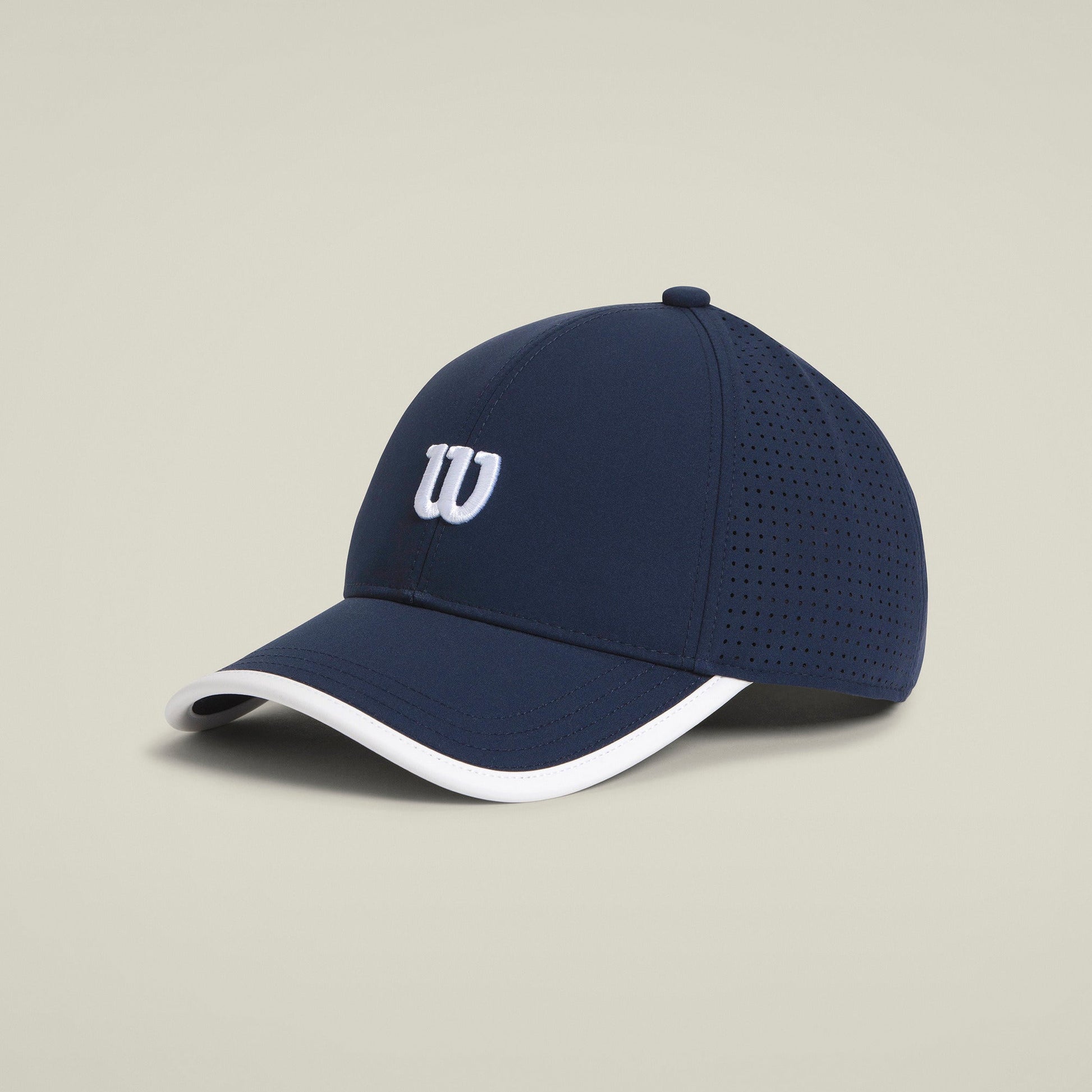 Juega con precisión con la Gorra Wilson Active Perforated 2025 Azul Marino. Ligera, transpirable y perfecta para tu rendimiento en la pista de pádel.